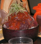 この写真はそこで食べた、海鮮丼です。 結構有名なお店みたいで、とても美味しく、見てのとおりの大盛りで、大食いの私にも満足の量でした! 旅行中はその他にも大食いしまくりで、1泊の旅行なのに、2kgも太ってました・・・。 |